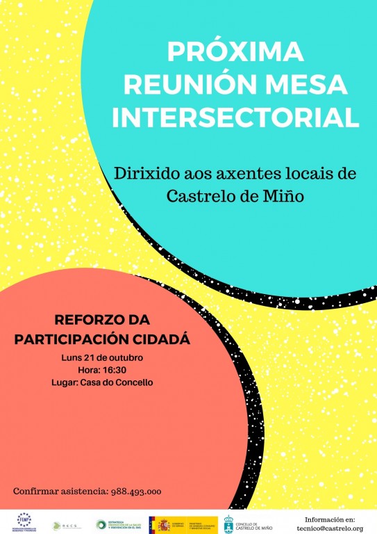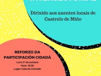 O próximo luns 21 de outubro as 16:30 horas na Casa do Concello celebrarase a Mesa Intersectorial dirixida aos axentes locais de Castrelo de Miño.